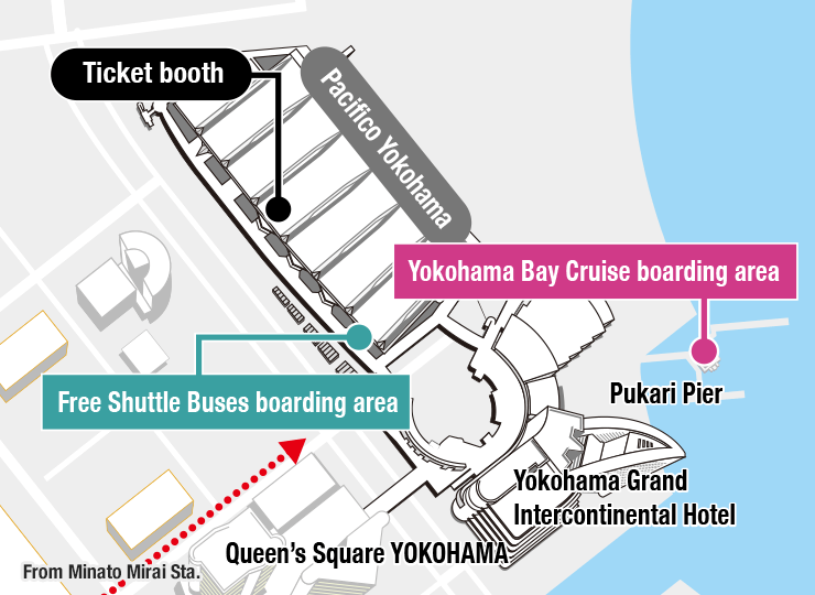 ◎Boarding and disembarking locations for the Pacifico Yokohama venue will be on the A Hall side.